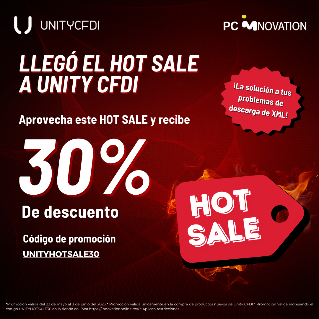 Celebremos este mes patrio con un superdescuento por tiempo limitado, en la compra de licencias Unity CFDI de cuentas ilimitadas recibe un 40% de descuento utilizando el código 4SX2WEL9. Descarga XML´s de forma automática y desatendida, Ahorra tiempos de descarga y organización. Despreocúpate del proceso y deja que el sistema lo haga por ti.